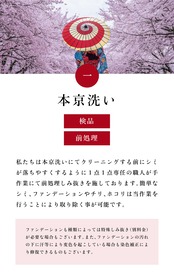 ※万一のクリーニングトラブルの際はクリーニング事故賠償基準に基づき適切にご対応させて頂きます。